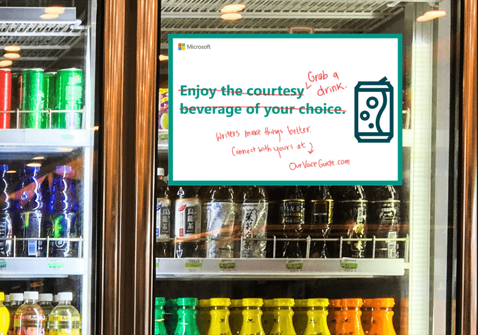 A sample of office signage made to promote developers using in-house writers.
